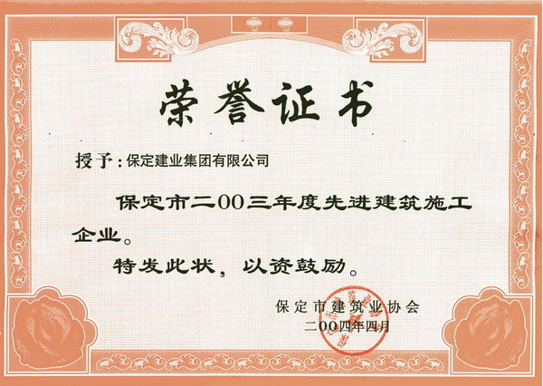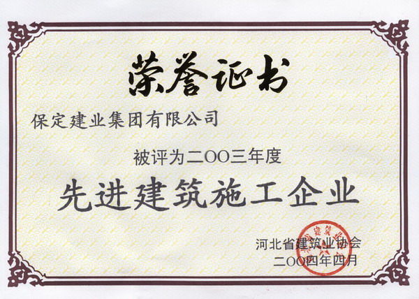 03年度省先進(jìn)建筑施工企業(yè)證書(shū)