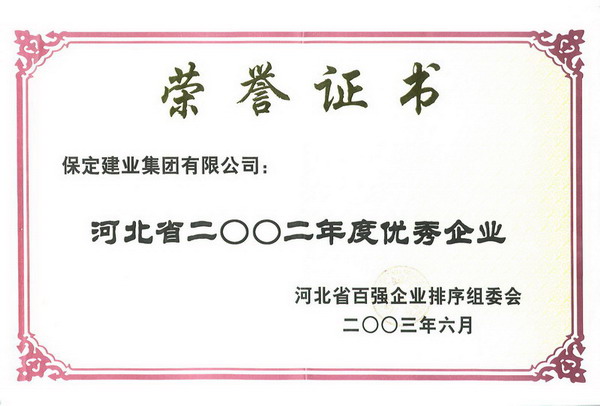 02年度省百強優(yōu)秀企業(yè)證書(shū)